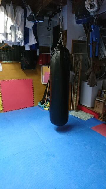 2020年03月12日 2020/03/12 あこう堂 今日は、「あなたの道場 あこう堂」を貸し切り状態で、一人稽古!基本、移動から!昨日、時間の関係で出来なかった「送り足」の移動をする。形は、昨日、間違えまくりの四方公相君から始める。まずまずの出来だ。セイエンチンニーパイポシソーチンを2回か3回か打つ。次はサンドバッグだ!普段、出来ないことが出来る喜び(●´∀`●)まずは、軽くダラダラと叩いてみる!いつの間にか、ワンツー ローキックになっていた(笑)身体が衝撃になれたようなので、数を決めて打ち込みます。ワンツー(上段+中段 ワンは空突きでツーを叩く)逆上+逆中(逆中を叩く)刻み突き中段逆突き刻み突き+左上段回し蹴り中段逆突き+左上段回し蹴り裏回し蹴り左右を各10回その後は、自由に突き蹴りする。何故か、蹴りは、ローキックとミドルキックが多かった。ふと、気が付くと、少しずつですが、サンドバッグが上下に動いております。これなら、両手で突くと、大きくもっと跳ねるのでは?以前、新垣清先生の動画を紹介しましたが、あれほどは動きませんでしたが、少し動きました。楽しくなり、しばらく遊んでしまいました(*´∇`*)新垣先生は「滑車」と表現しておられましたが、「波動」では?と感じました。研究してみます。気になってことは、右の蹴りが遅い。明らかに左の方が早い。これまた、改良の余地がありそうだ!累計820回254